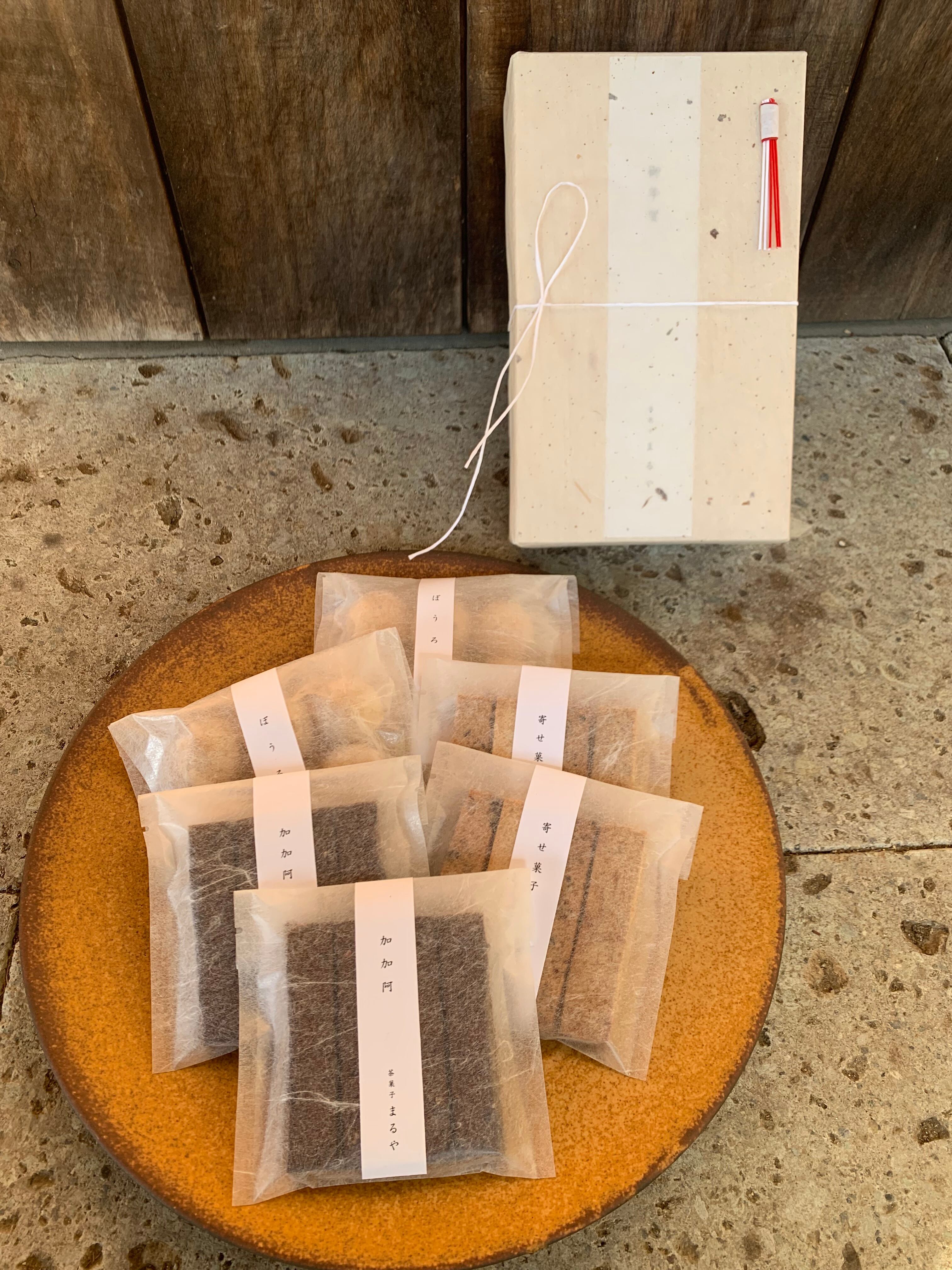 限定で販売している寄せ菓子と加加阿-cacao-とぼうろの詰合せ木箱入りです。